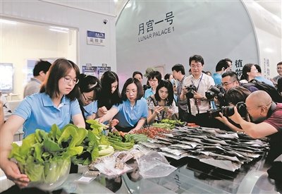 图为展示“月宫一号”生产的农作物。中国教育报记者 张学军 摄
